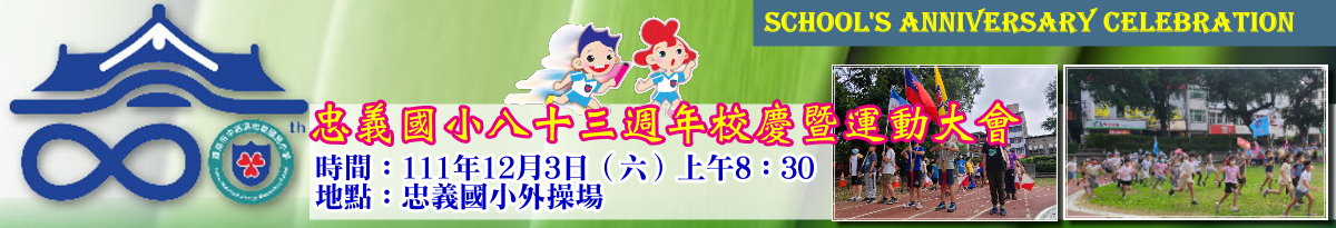 忠義國小八十二屆校慶運動會已於3/26圓滿舉辦,當天氣氛熱絡,參與人員的秩序良好,相關照片集錦請參閱下方連結: